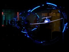 No, it creates a holographic effect using high-speed LED rotation for a 3D illusion.